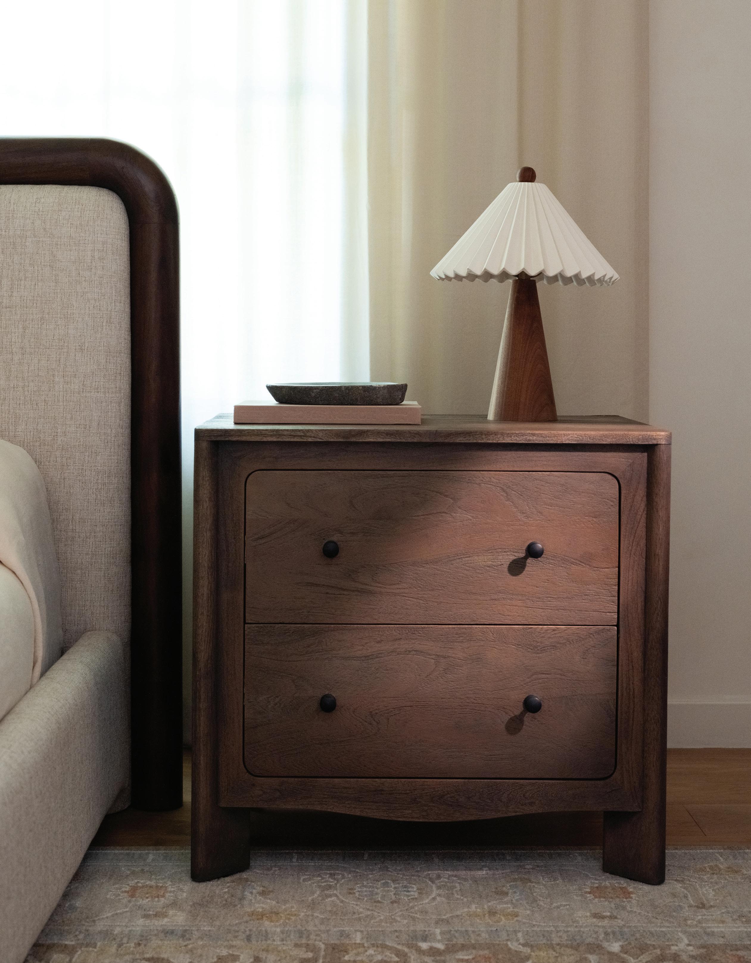 Mabel Nightstand in Dark Brown, Bower Bed in Brown