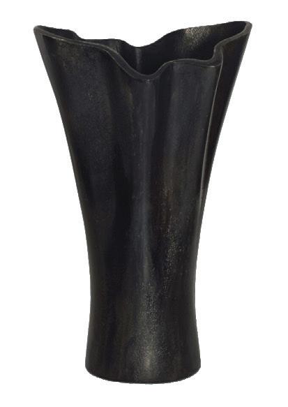 6. Victor Cast Aluminum Sculpture in Dark Green Patina 7. Yeri Cast Aluminum Vase in Black