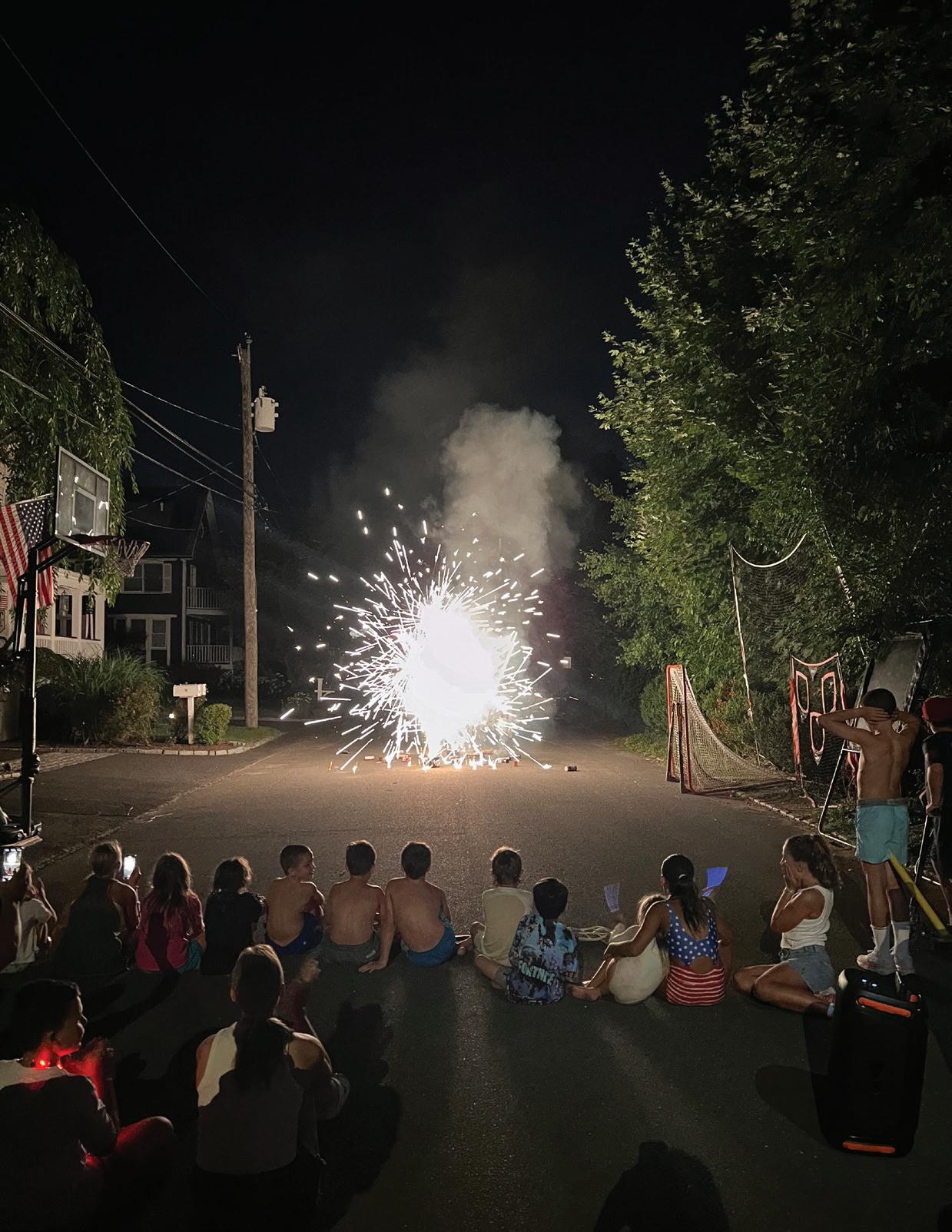 Agang of kids plant themselves right in the center of a street in Old Greenwich—prime real estate for a night of neighborhood fireworks. You get the sense that no one’s in a rush; parents are chatting behind them; sparklers are about to be lit, and the cooler’s still full. It’s the kind of Fourth of July magic that doesn’t cost a thing but lasts forever. These are the good old days—in real time. G