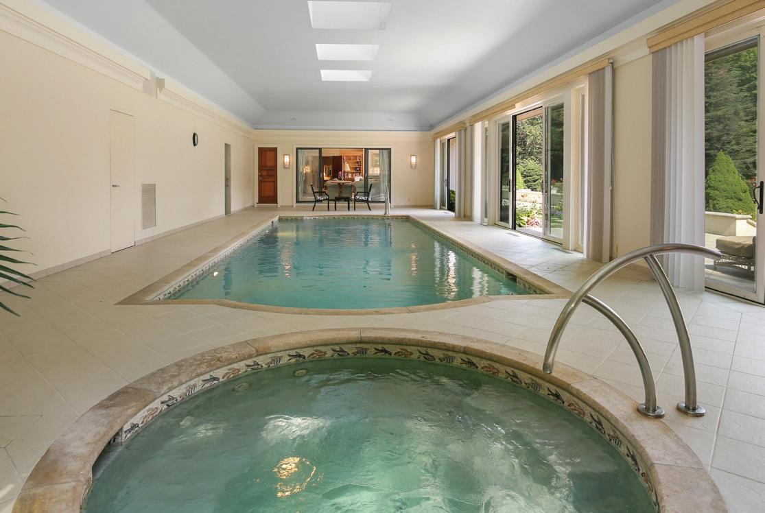 Stately back-country home graces eight private, gated acres with tennis court, indoor pool, spa, steam room and cottage with views of Rockwood Lake. Ideal for entertaining and relaxed everyday living with elegant formal rooms; gourmet, catering kitchens; twelve bedrooms and lower level entertainment room with bar.