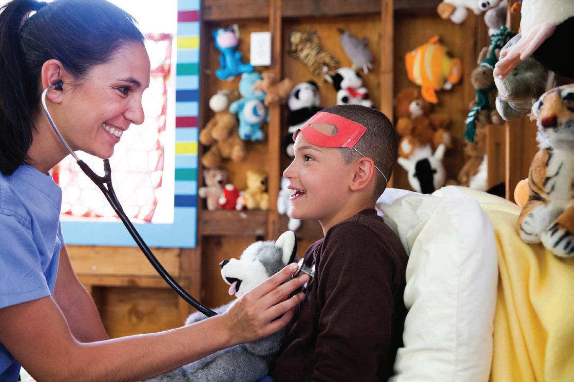 above: Campers connect through art, one of many activities that build friendship and self-expression. below: Medical volunteers and staff ensure every camper’s needs are met.