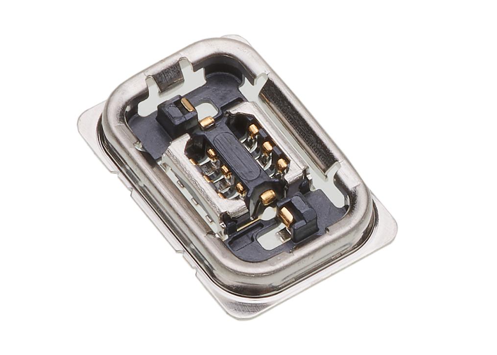 The 5G25 RF Connector has a dedicated RF structure that supports up to 25 GHz for superior SI performance, a full-shielding design to reduce electromagnetic interference (EMI), and shielded parts around the perimeter and grounding cover to protect signal terminals and ensure robustness. Furthermore, wider alignment allows for proper mating position and helps prevent any mis-operation.