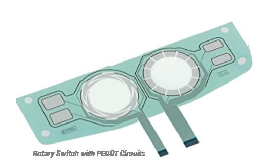 One of the most promising new materials is poly (3,4-ethylenedioxythiophene), commonly known as PEDOT. A printable organic polymer, it can be deposited onto inexpensive polyester film, providing more efficient use of materials than the current standard of indium tin oxide (ITO). It’s also transparent, less brittle and more flexible, allowing OEMs to create keypad backlighting on curved surfaces, such as user-friendly