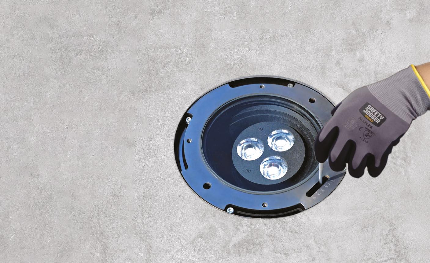 One of the most interesting features of the LD234 is the range of mounting options, which satisfy the initial marketing feedback. In its basic form, the luminaire incorporates a tilt adjustment mechanism up to 16°. Four set screws can be individually adjusted to aim and / or level the luminaire on uneven surfaces.