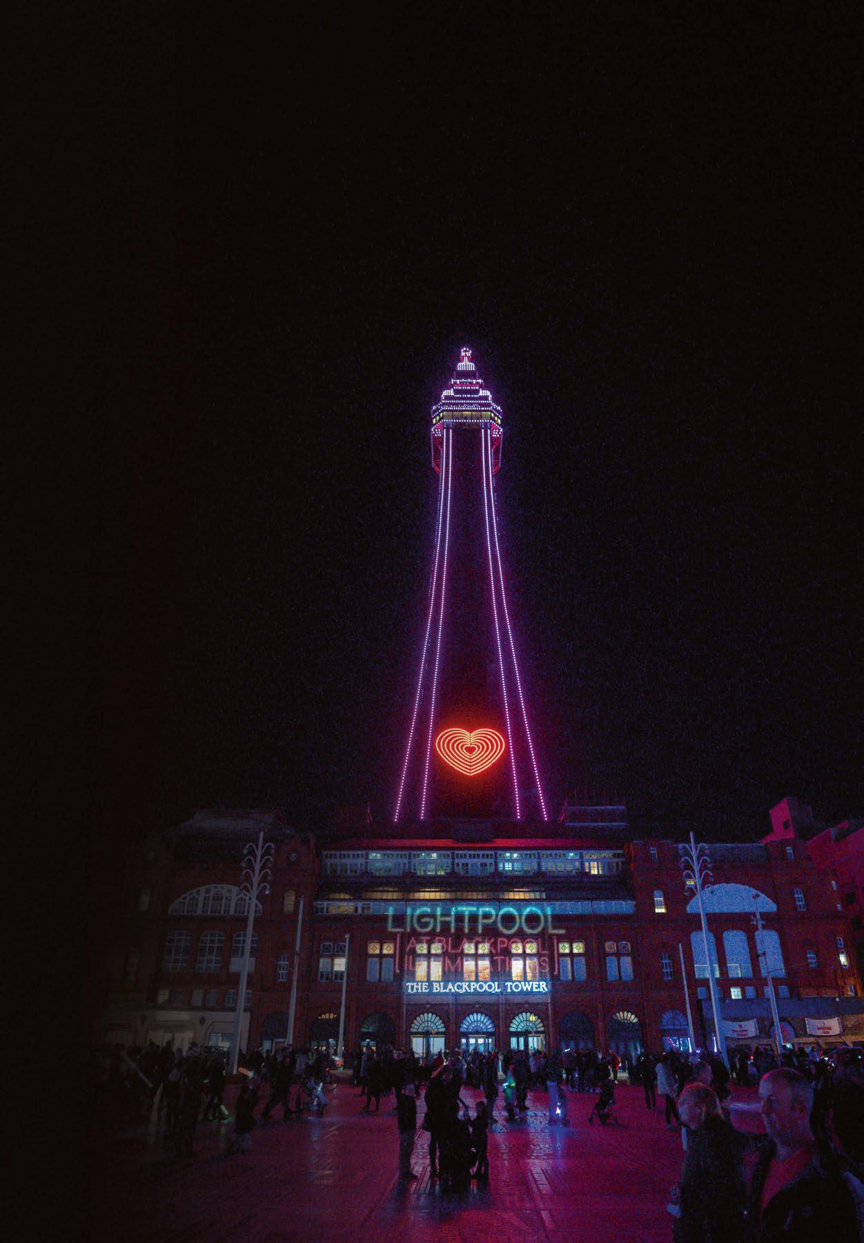 sworn design enemies. To work, Blackpool Illuminations have to be high kicking, showbiz, jazz hands and more than a little ‘nudge nudge, wink wink’. Terms no-one ever teaches you at art school.”
