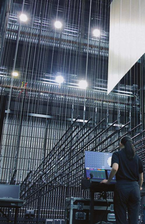 The system installed is unique in that the great majority of the 320 self-powered, full-range loudspeakers distributed laterally and overhead throughout the hall are higherpowered models such as the UPM-1XP and ULTRA-X20XP, each capable of carrying high-level discrete sounds throughout the auditorium. This allows sound designers to create dynamic immersive sound experiences, either with Constellation off or in conjunction with a Constellation acoustic preset. Such dual-use capability previously was offered only in auditoriums seating at most a few hundred. For amplified performances, the hall has installed a permanent reinforcement system comprising Meyer Sound LYON, LEOPARD, and LINA line array loudspeakers with deep bass support from 1100-LFC low-frequency control elements. The system is also unique in that it is the first to integrate loudspeakers for Constellation’s active stage shell into the LED video wall. The loudspeakers inside rotate so that the wall can be erected with either the passive wall surface or the active video screens facing the auditorium.