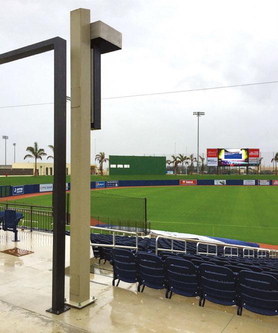 While IC Live X represents the future of steerable sound, its predecessor has already proven itself in real-world stadium use. At the Ballpark of the Palm Beaches, spring training home to the Houston Astros and Washington Nationals, Renkus-Heinz IC Live arrays are installed throughout the facility to provide intelligible, full-range coverage across the 6,500-seat main stadium. With no overhangs and only a limited number of mounting columns available, integrators relied on beam steering to aim sound precisely at the seating areas without affecting adjacent zones. Twenty-four arrays were installed on lighting poles and architectural columns, ensuring powerful, evenly distributed sound throughout