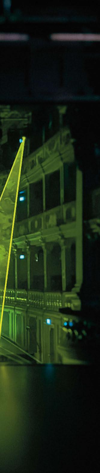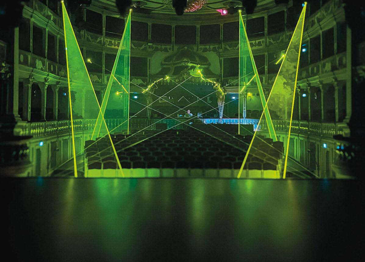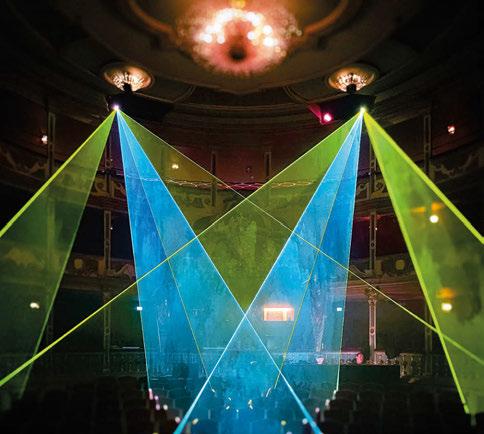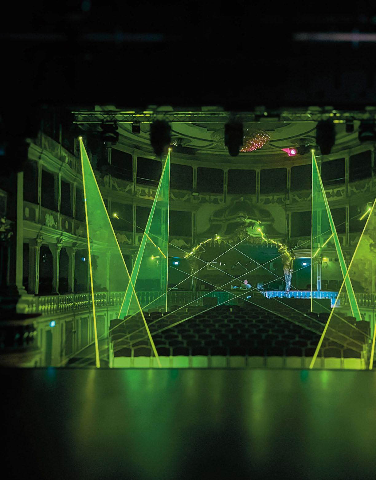 laser light, making the PHAENON XD Blizzard ideal for applications where absolute precision and colour fidelity are required. The system’s CT 6210 scanners with TurboScan driver electronics guarantee highspeed, high-precision projections, with a scan speed of 60k at 8° and a maximum projection angle of 80°. The motorised beam adjustment ensures perfect colour alignment throughout the performance, while the low divergence of less than 1 mrad and the 3 mm beam diameter contribute to sharp and detailed visuals. To seamlessly integrate the lasers into the production, the system utilises AVB streaming via Ethernet, MIDI control via Ableton Live, and AIFF player functionality, allowing for real-time synchronisation of sound, laser and light elements. With its compact housing and quite operation, the PHAENON XD Blizzard is perfectly suited for demanding theatrical environments, offering reliability and flexibility in equal measure. Hamdemir used the intuitive LA.toolbox monitoring software from LaserAnimation Sollinger for the overall laser control and Derivative’s TouchDesigner for the show control. The precision of the laser projectors used was critical to the entire theatre production, as the lasers were used not only on stage, but also in the audience area. The result is a visually stunning and impressive production that delights audiences. With LaserAnimation Sollinger’s innovative laser technology, reliable hardware and intuitive control systems, Beyond successfully redefines the role of laser light in storytelling. Thanks to Hamdemir’s precise selection of laser technology and software, the production achieves a deeply immersive experience, taking the impact of light beyond traditional stage lighting. www.laseranimation.com