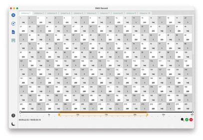DMX Record is also capable of precisely capturing intricate and fastmoving lighting data from entertainment lighting consoles including not just colour and intensity but also position, beam and any other DMX parameter you could imagine.