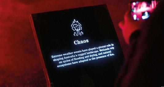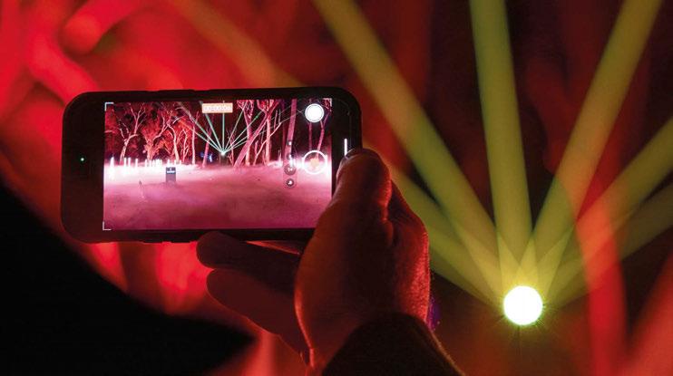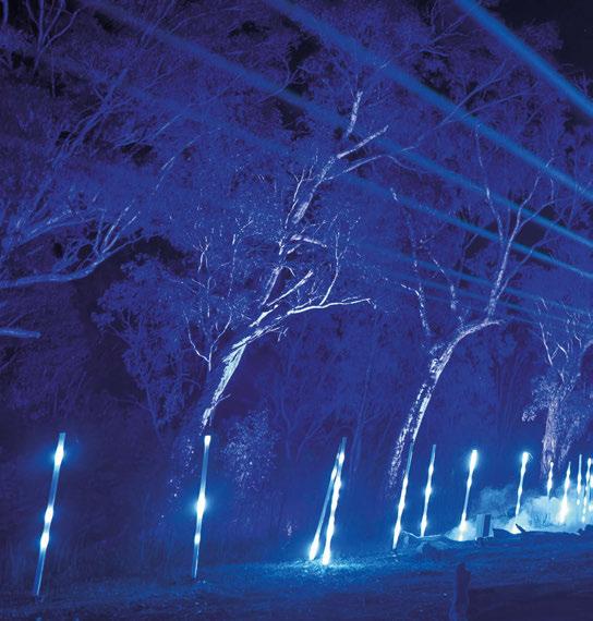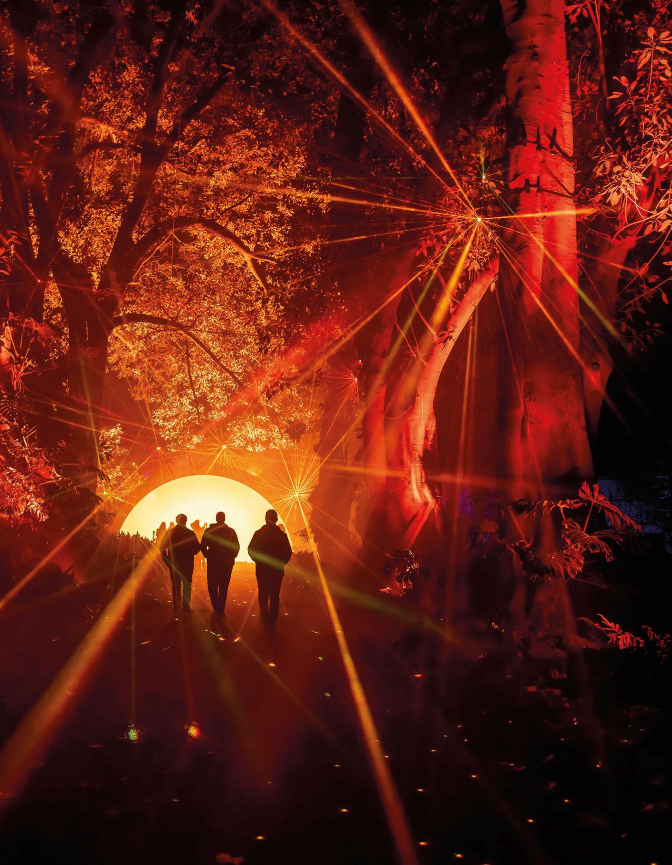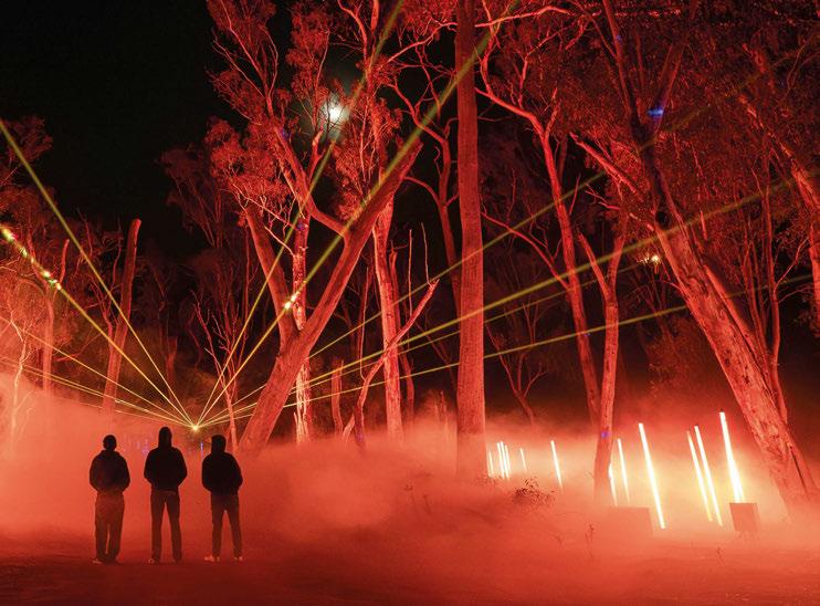 Across the 13 activations to journey through, the ‘Chaos’ activation is a spectacular, synchronised mesh of high-powered lasers, pulsating audio, special effects and programmed LED tubing positioned within a glade in the bushland. Depicting the extreme weather events that have shaped Australia’s rugged landscape, this activation immerses the individual in a chaos permeating the senses of sight, sound and smell.