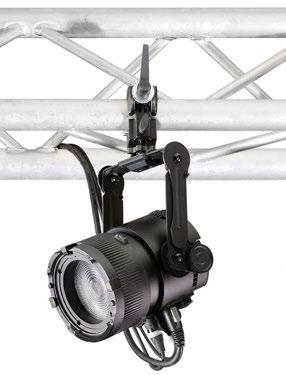 traditional Fresnel: as a key or backlight, for bouncing, accent lighting, in press conferences, and in corporate environments. This is a product that has been in the mind of Simon Canins, the company CTO, for some time. Simon had the main concept quite clearly defined, so we spent more time on the value proposition, housing design, and specifically the LED engine with its OutputGain feature. It probably took us around a year and a half to develop it. This timeline is, of course, influenced by having successful building blocks in place, such as the AX5 TriplePAR, which greatly assisted with the hardware, and PlutoFresnel, which features a brilliant optical system.