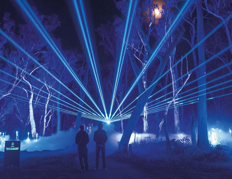 It is the largest First Nation light and sound show in Australia, transforming over 40 acres of natural Australian bushland into a vibrant celebration of Indigenous culture, history and the environment. At the heart of Bullanginya Dreaming lies the objective to provide visitors with a memorable and immersive experience. This 1.8km walking track invites guests to disconnect from the outside world and enter the ‘Dreamtime’ – a cultural and spiritual concept central to Indigenous Australians. The journey takes approximately 1.5 hours, during which visitors engage with 13 distinct activations, each showcasing significant elements of Bangerang history and culture. The storyline weaves together key cultural elements, from a ‘Welcome to Country’ ceremony, to the profound connections between the Bangerang People and their environment. Some of the highlights include ‘People of the Tall Trees’, ‘Patterns of Nature’ and ‘Chaos’.