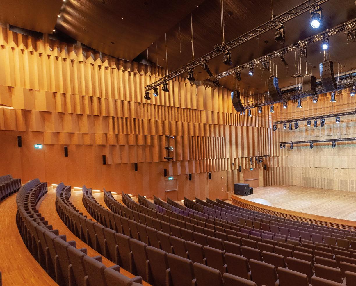 TAIT installed an automated flying system comprising of 19 linesets, powered by an array of winches, automated the main curtain, the existing orchestra acoustic shell, added chain hoists for flying loudspeaker arrays, and controlled the tormentor panels and tracks.