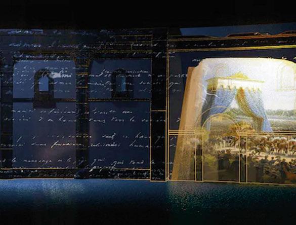 The production transforms the stage into a surreal space where reality and reflection merge, immersing the audience in an audiovisual journey through time, memory, and farewell.