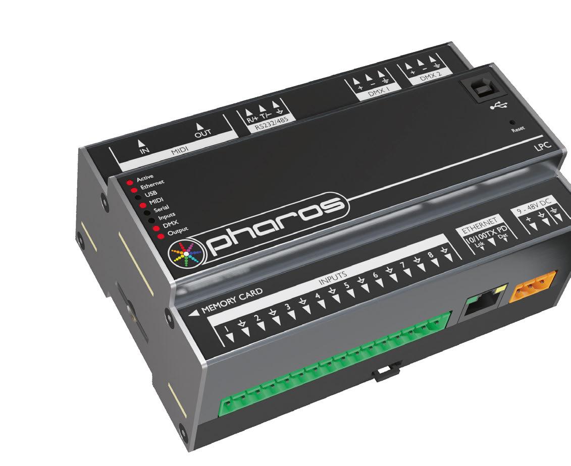 The LPC can reliably play back recordings as part of its programming, with all the Pharos show control and triggering benefits. A trigger can range from a simple button press to complex events like sunrise on every Thursday. Types of trigger include real-time and astronomical events (date, time, sunrise, sunset), user input (touch panel, webpage, buttons), protocol triggers (RS232, RS485, Ethernet, MIDI, DALI), dynamic triggers (DMX input, analogue, audio input), and many more.