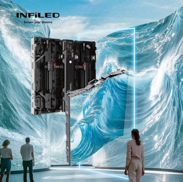 INFiLED Xmk3 is a flexible LED solution made for immersive indoor spaces. With its ultra-adaptable structure and ±45° curve range, Xmk3 lets creators bend, shape, and sculpt displays that follow the story, not the frame. Whether it’s a smooth wave or a perfect cylinder, Xmk3 adapts to a space with precision. It also connects seamlessly with INFiLED’s other rental series – including DBmk2, EZmk2, MagCube, and RS – enabling creative hybrid builds with wave and rightangle designs. Xmk3 isn’t just flexible, it’s built for fast, repeated setup. Push-button curvature control enables precise angle adjustments, while alignment pins ensure seamless screen alignment. ArmorLED tech and auto-retractable corner protection reduce LED damage during handling, while SolidSkin tech adds a protective coating to resist dust, moisture, and wear, ideal for high-use environments. From themed environments and touring shows to interactive brand spaces and XR studios, Xmk3 transforms LED from surface to structure. www.infiled.com