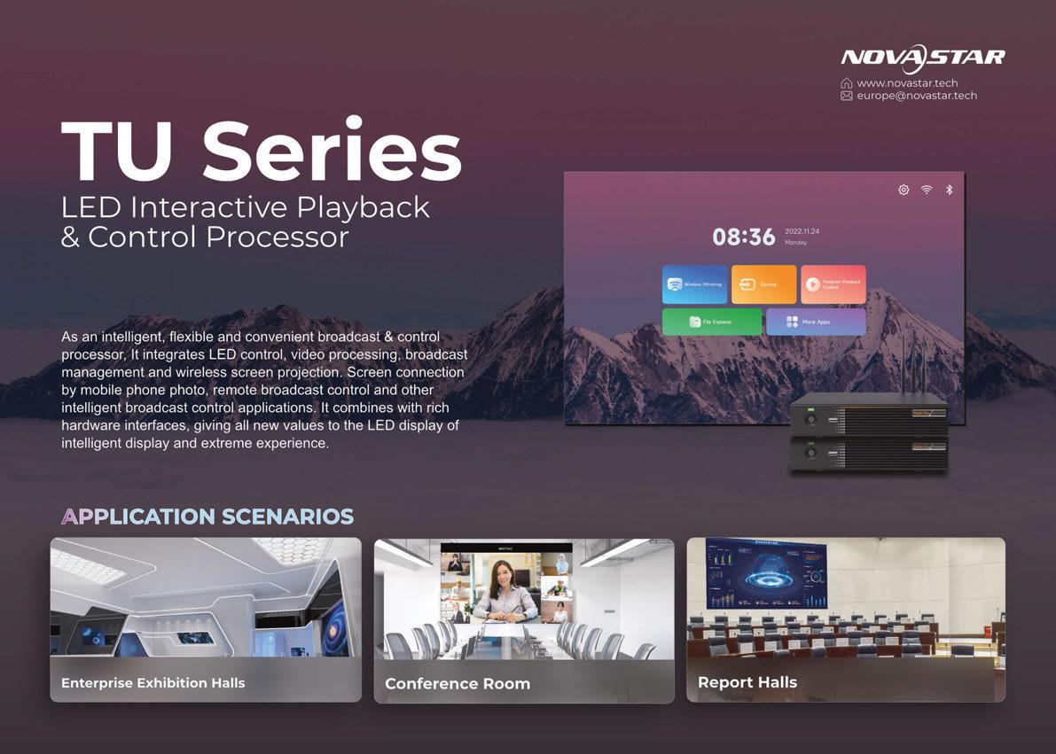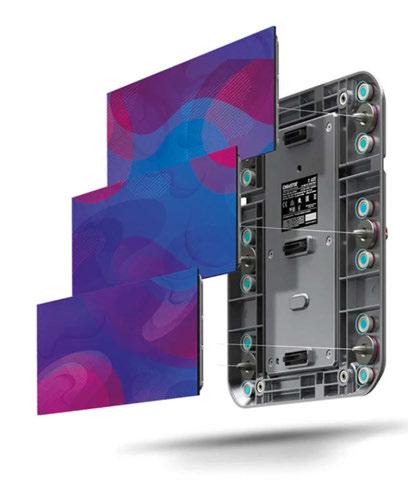 The REM MIRA 1.9mm is a high-performance indoor video wall solution designed to elevate visual storytelling while simplifying the installation experience. Built with a sleek, ultra-thin profile ideal for direct wall mounting, the REM MIRA blends cuttingedge technology with user-first engineering. Featuring universal magnetic LED modules, it allows for effortless front installation and maintenance, reducing setup time and complexity. Powered by premium NovaStar A10s Pro receiver cards and MX series processors, this system delivers stunningly accurate visuals across a wide DCI-P3 colour gamut with ultra-low latency, making it a favourite for camera-friendly applications. The included COEX VMP software streamlines video mapping and scaling through an intuitive interface, empowering users to focus more on creativity and less on configuration. Mira comes in two form factors and two pixel pitches that pair beautifully with CHAUVET’s REM 1 and REM 3IP rental models. For special events, add rented screens to a venue’s fixed screens with confidence. REM MIRA’s integrated frame linking hardware and anti-reflective black panel design ensures seamless alignment, vibrant imagery, and exceptional adaptability. With 22-bit+ greyscale rendering and a 3,840Hz refresh rate, the REM MIRA 1.9mm is not just a display – it’s a collaborative tool that enhances visual impact and creative freedom. www.chauvetprofessional.com