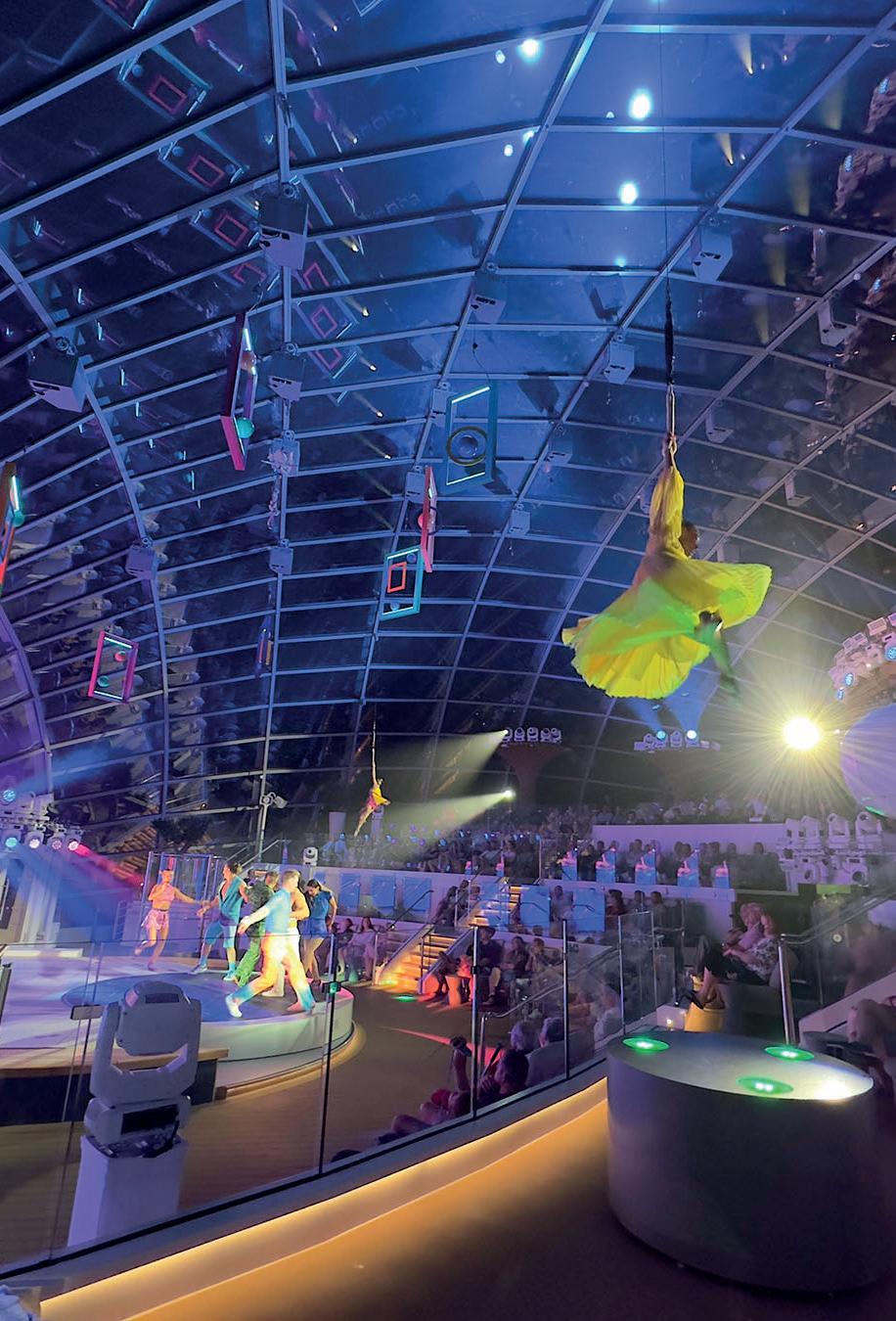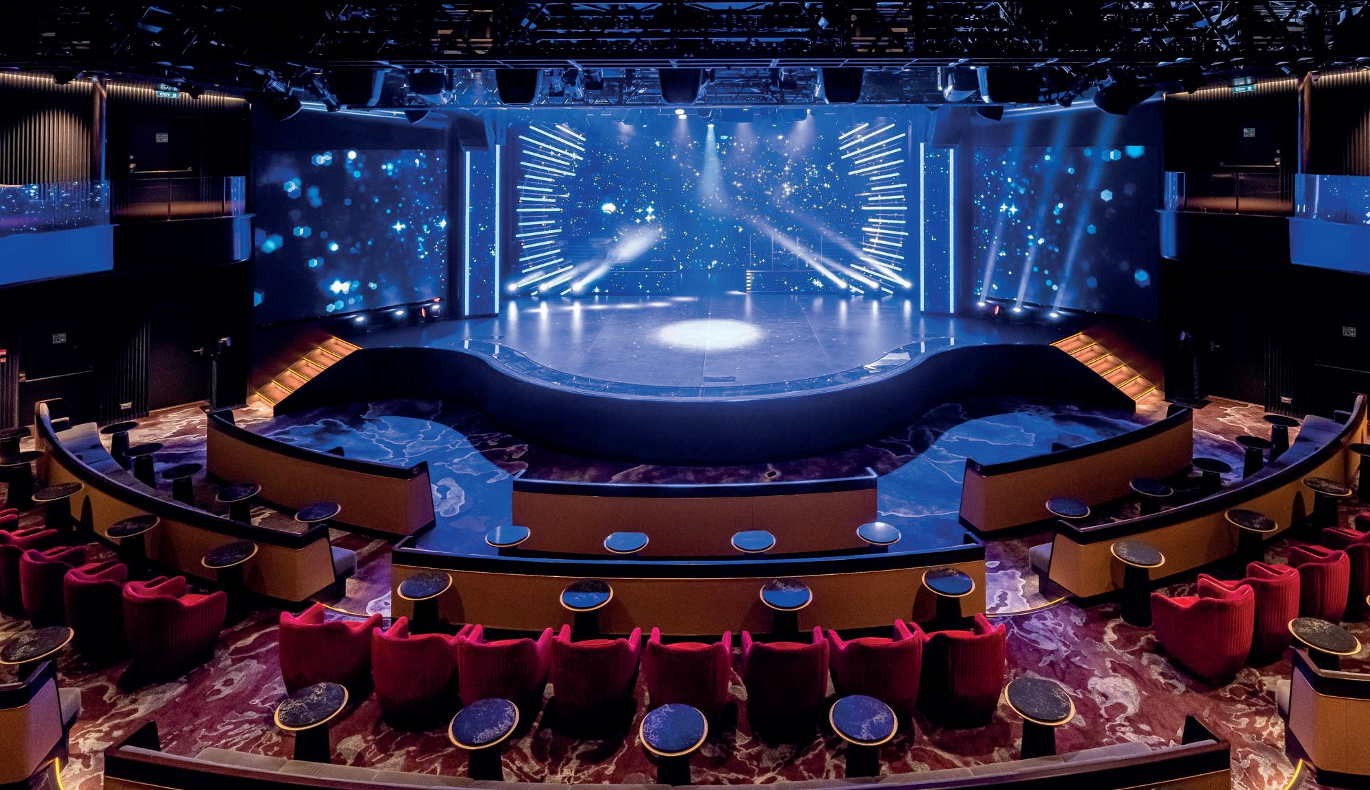 A floating vessel with a mass of connected zones requiring complex AV solutions, from theatres and performance venues, to bars, outdoor play zones and restaurants.