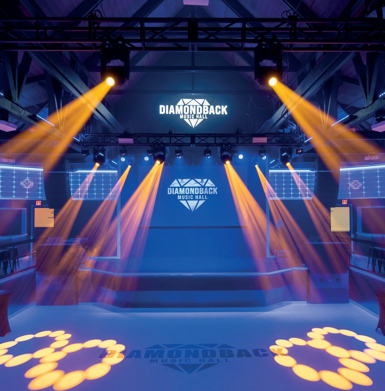 Atlas features fade-to-warm functionality, ideal for highlighting the venue’s architectural ceiling elements.