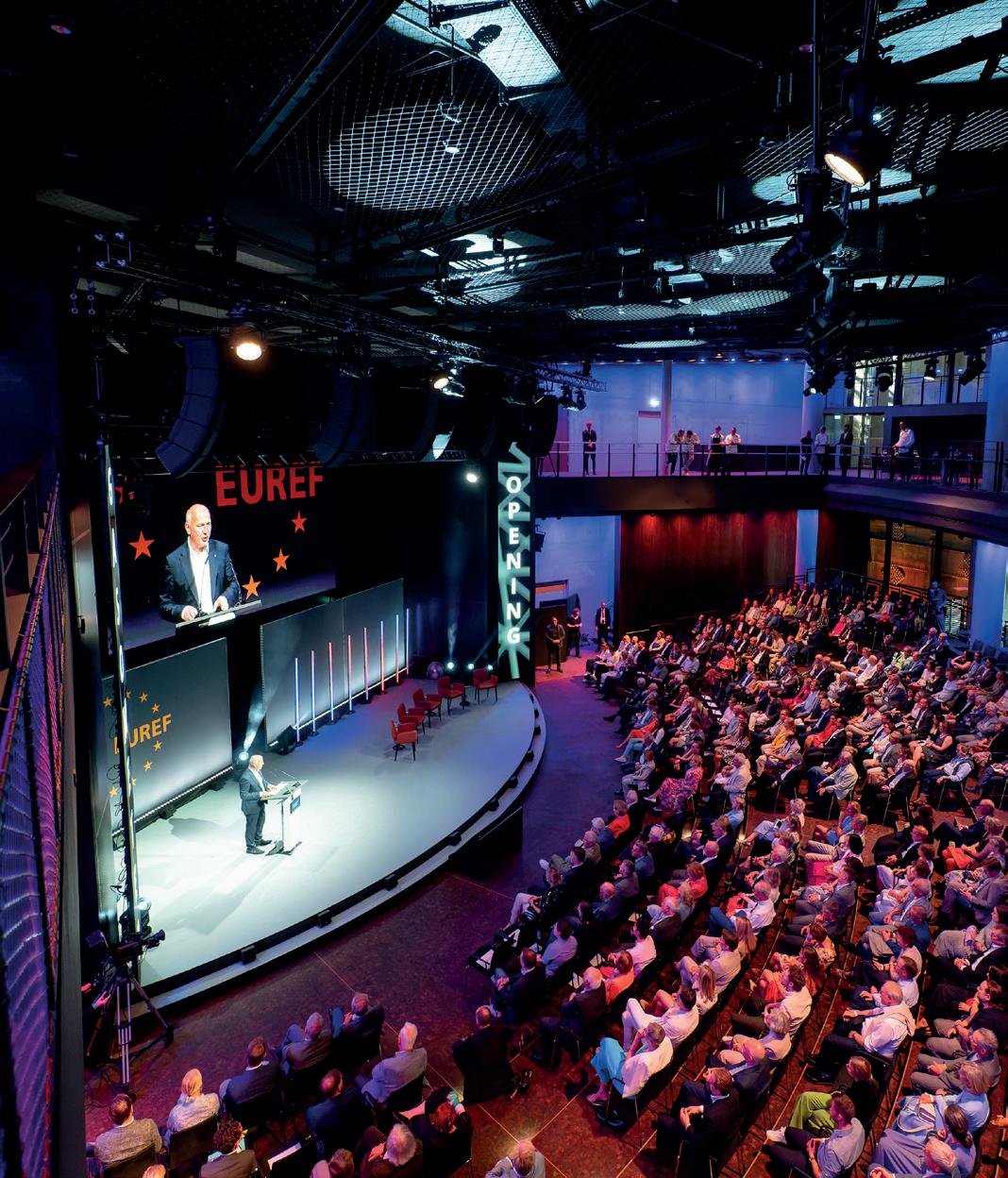 The project replaced a traditional halogen-based setup with a future-proof, digitally controlled LED system. Two GDS product lines – Atlas and Puppis 2K – were integrated to provide precise, high-quality illumination, combined with RGBW flexibility and fadeto-warm technology, also matching the LED chip used in a prior project. The result is an innovative lighting solution that delivers both energy efficiency and aesthetic excellence, supporting diverse cultural and corporate events.