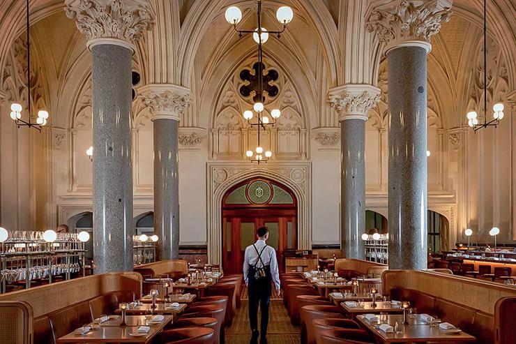 An eating establishment, usually with subtle background music in the daytime and evening, getting livelier as the evening progresses.