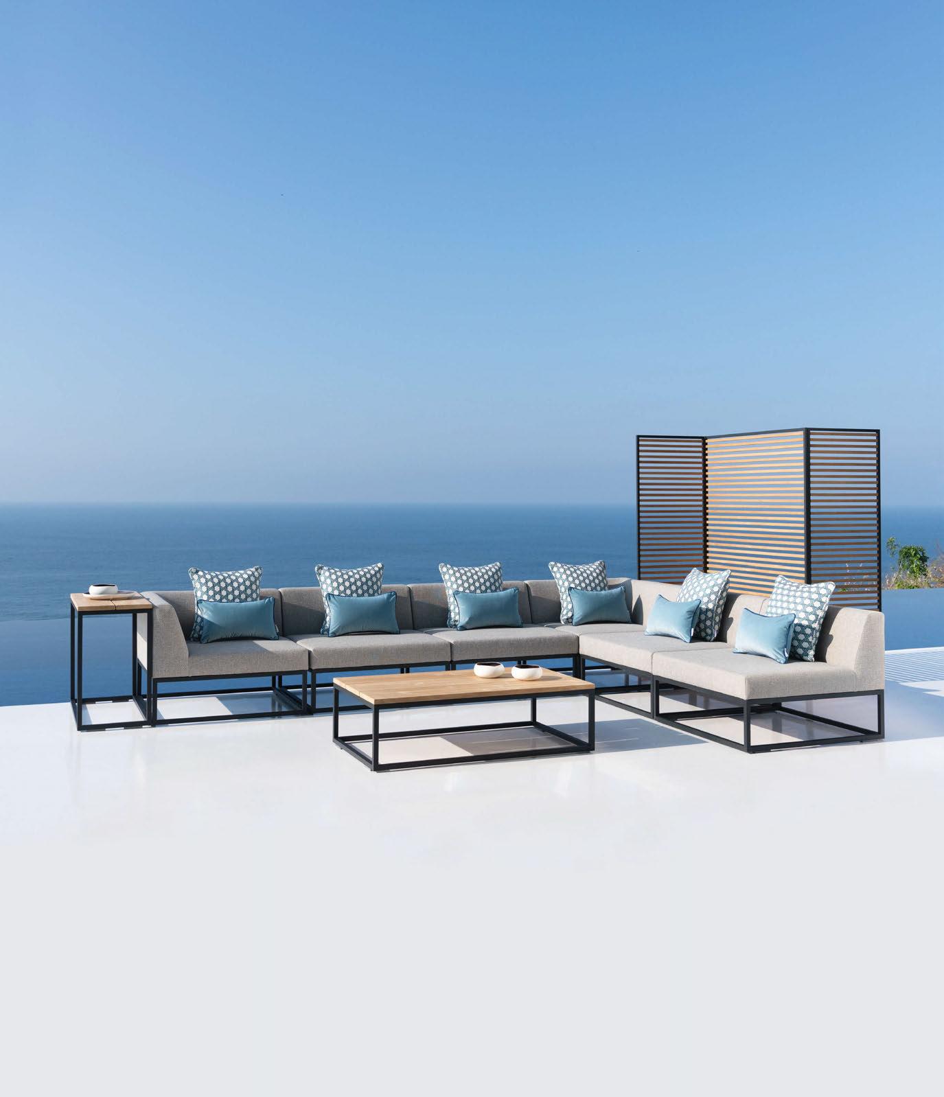 Leisure Plan provides individuality, product sustainability and supreme comfort to both private and commercial hospitality outdoor living areas. In the early 2000s, Leisure Plan co-founded contemporary outdoor furniture brand Ego Paris, going on to develop of a broad portfolio of unique designs manufactured near Lyon in France. Kama is a modular outdoor seating collection with French design flair. The range is characterised by heat-hardened powder-coated aluminium frames that are available in an extensive colour palette with a wide spectrum of cushion fabrics to coordinate with a range of design concepts. Each model can be adapted for different functions by re-configuring the cushions, from lounging to low-level dining. For example, the Dyvan unit serves as a chaise-sunlounger or sofa, but can also be used with the adjustable height coffee table, to enable casual dining.