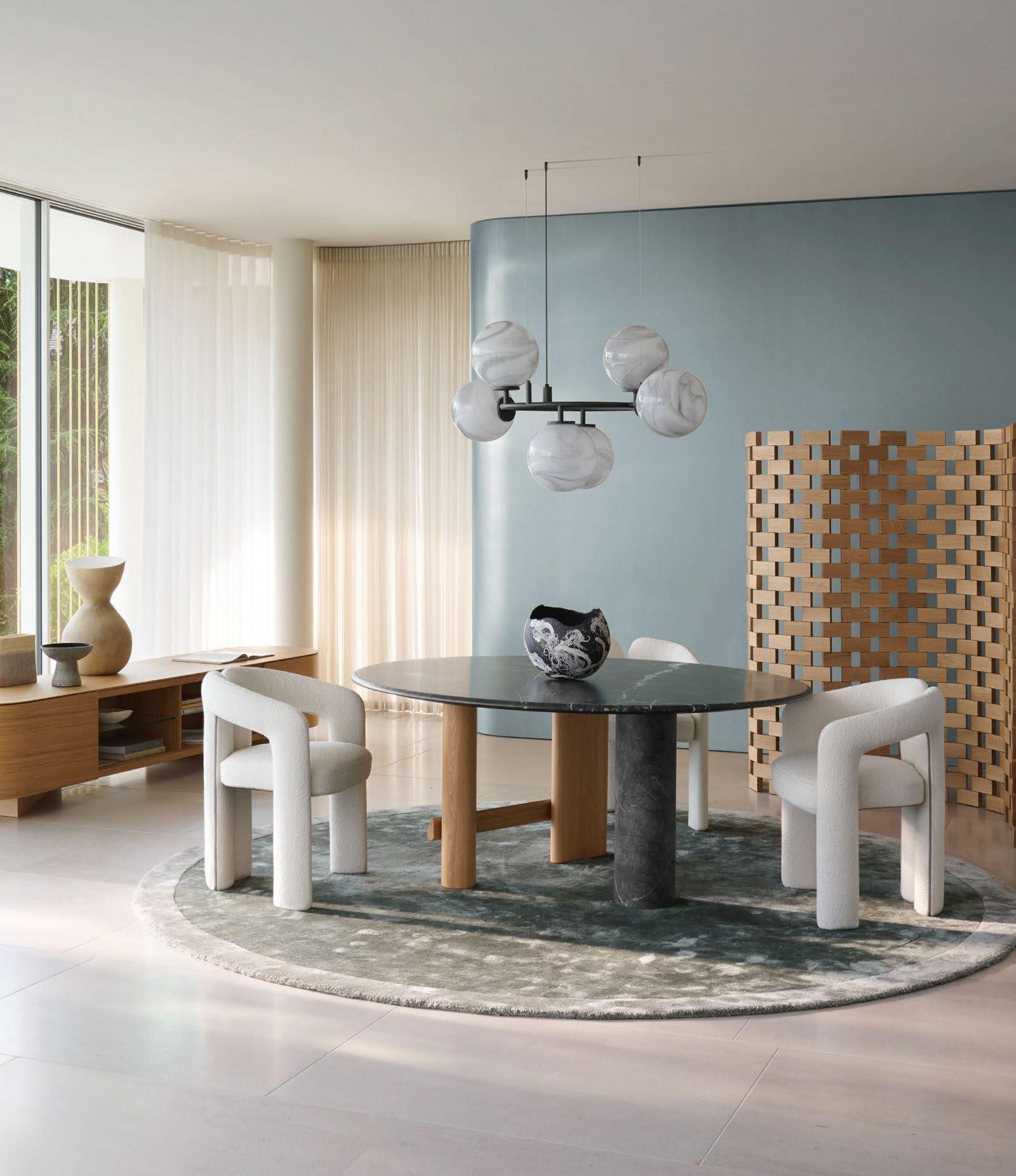 Designed by Yabu Pushelberg, the Ynez sofa series is characterised by curved silhouettes and soft geometric forms that are both modern and nostalgic. Its name – meaning pure in ancient Greek –reflects the simplicity of its design. The collection resonates across cultures, blending rich materials and precise construction methods to honour both Eastern craft traditions and Western design sensibilities. Conceived to deliver visual impact and comfort, Ynez’s diverse formats – ranging from petite armchairs and two-seater sofas to ottomans – are distinct yet complementary, allowing for unity in large-scale settings without repetition. www.stellarworks.com