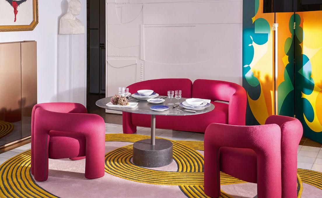 Since 1927, Cassina’s pioneering attitude has combined avant-garde technological skill with traditional craftsmanship, working with architects, designers and creatives to envision new forms. Designed by Patricia Urquiola, the Dudet family features welcoming curves and architectural design, characterised by a strong stylistic reference to the 1970s with a unique aesthetic that offers comfort. Dudet is defined by three padded elements: the seat and two sinuous tubular elements that, in a continuous line, create the legs, armrests and a backrest. The Dudet bold sofa – visually and materially amplified as if observed through a magnifying lens – boasts generous proportions; its seat cushion contours almost reach down to the floor, emphasising its spacious and cosy form. The collection also embodies circularity due to its innovative disassembly system that allows the metal structure to be separated from its padding, thus facilitating the recycling of its materials. The model’s upholstery can also be removed thanks to a zip, available in grey or black, that runs along the internal arch of the legs. www.cassina.com