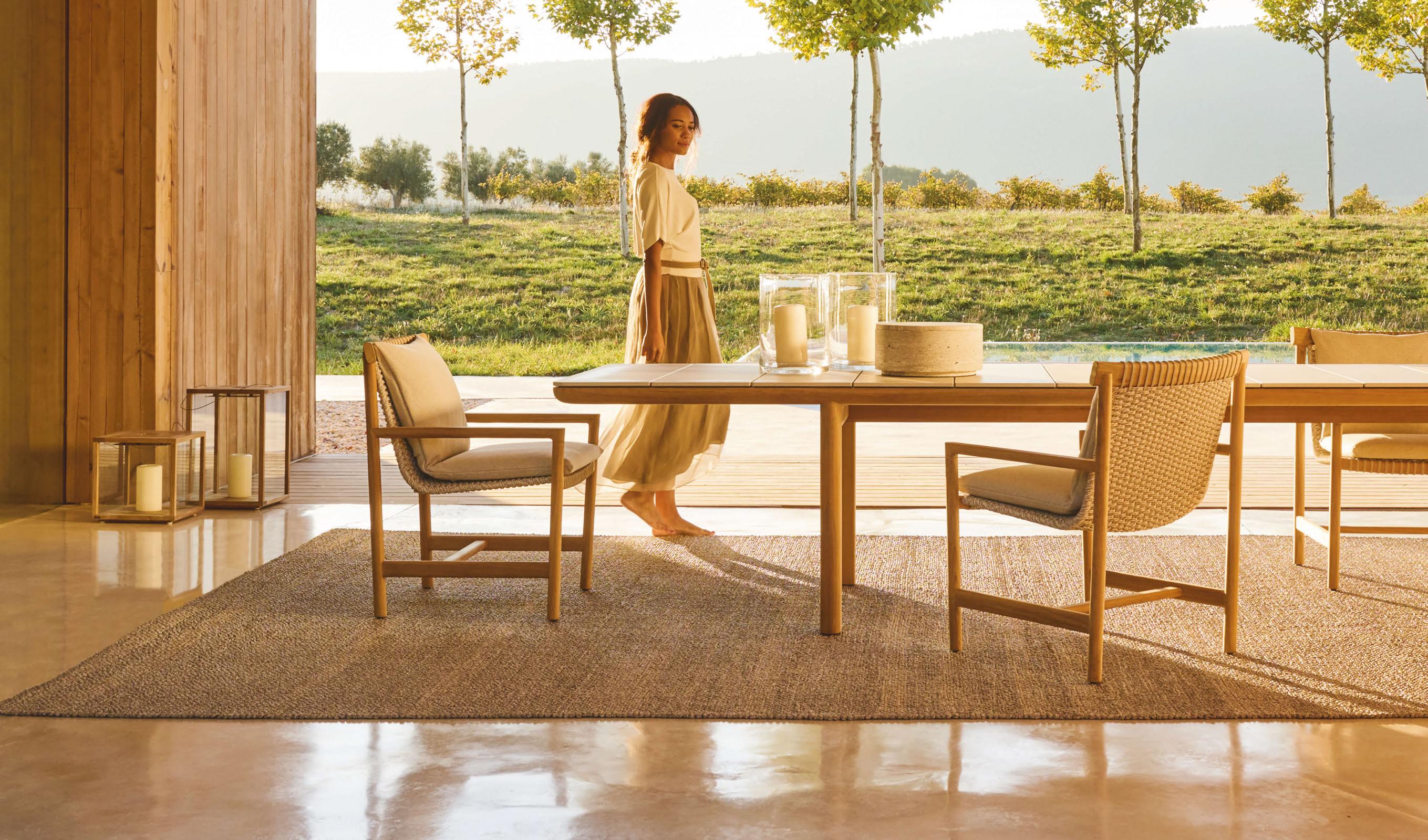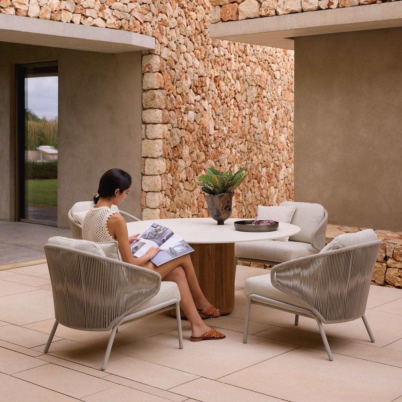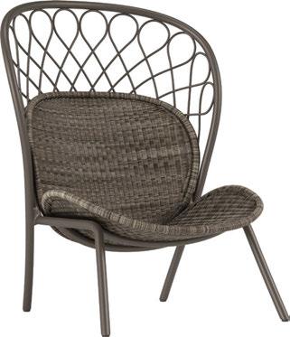 The European-inspired Plume collection by Patrick Norguet echoes influences from Modernist clamshell and classic, boho peacock chair profiles. Handwoven from variegated, dual skein JANUSfiber over powder-coated aluminium frames, Plume chairs are low-slung with a relaxed pitch and curved seats and backs, forming a cocoon-like structure that envelops the body. The high-back lounge chair is appointed with a winged, fan back of refined, looped openwork that evokes a peacock’s plumage and lends a feeling of privacy. The collection comprises one high-back and one low-back lounge chair, available in two colourways: smoke/ bronze and reed/talc. www.janusetcie.com
