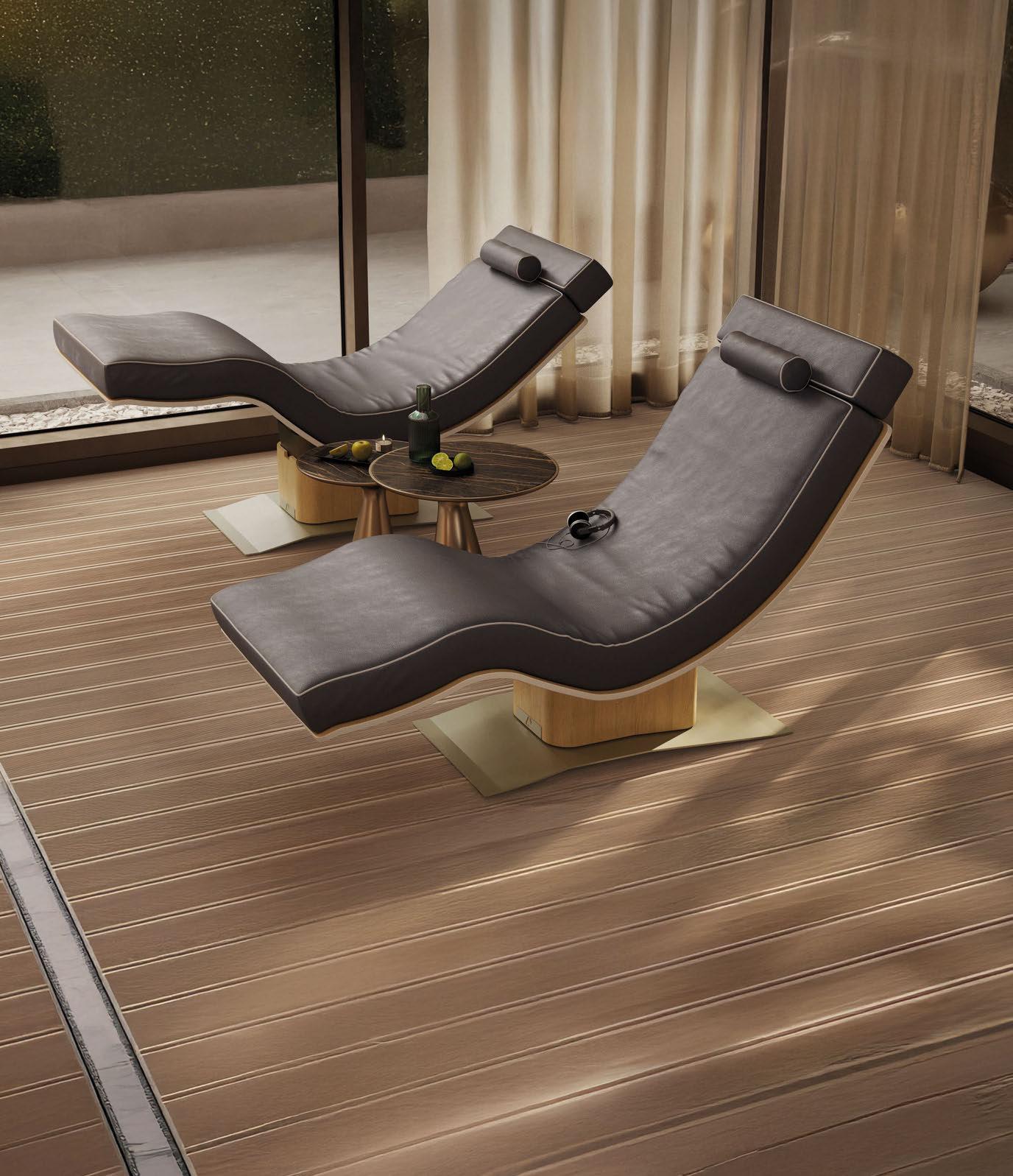 Designed to balance comfort and innovation, the Milano EVO treatment table combines refined aesthetics with cutting-edge wellness technology to offer a fully immersive experience. The memory foam mattress gently supports the body, adapting to its natural contours, with an integrated heating system distributing warmth evenly across the surface. Elevating the sensory journey further, the Vibro Music system delivers vibrations in sync with the music, creating a sound-based massage, while chromotherapy uses soft, shifting lights to stimulate the senses and promote inner balance. Milano EVO combines minimalist lines, customisable finishes and an artisanal attention to detail to offer guests a regenerative, multi-sensory ritual.