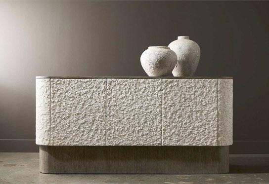 Characterised by substantial forms, softened profiles and perfect proportions, Bernhardt’s Monolith collection embraces the authenticity of its materials to create an organic, modern aesthetic. As textured stone contrasts the depth and character of wood grain, a palette of earthy, natural hues ground the collection with a warm, organic finish. Monolith’s smooth edges, plinth bases and offset exposed vertical posts balance curves and asymmetrical structures, while burnished cast aluminium lends the subtle shine of an aged patina. Available in various materials and finishes, Monolith explores of the elemental relationship between shape and material.