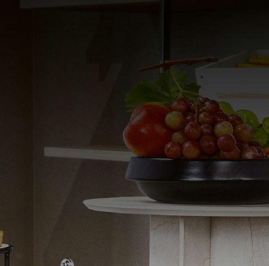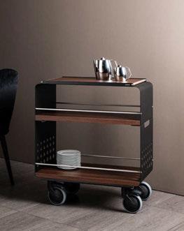 The design and materials that distinguish the Radici Buffet System are exemplified in a new trolley collection: a stainlesssteel structure available in two different colours with a scratch-resistant coating. The tops are available in high-quality stoneware and two wood types. Made with a water-repellent treatment, each trolley is durable, easy-to-handle and resistant to bacteria, heat and solvents. Crafted in Italy, Radici trolleys are available in different sizes, and can be customised with a wide range of accessories to create configurations that perfectly suit different style and service requirements, from cocktail creation to table-side dish preparation. www.sambonet.com