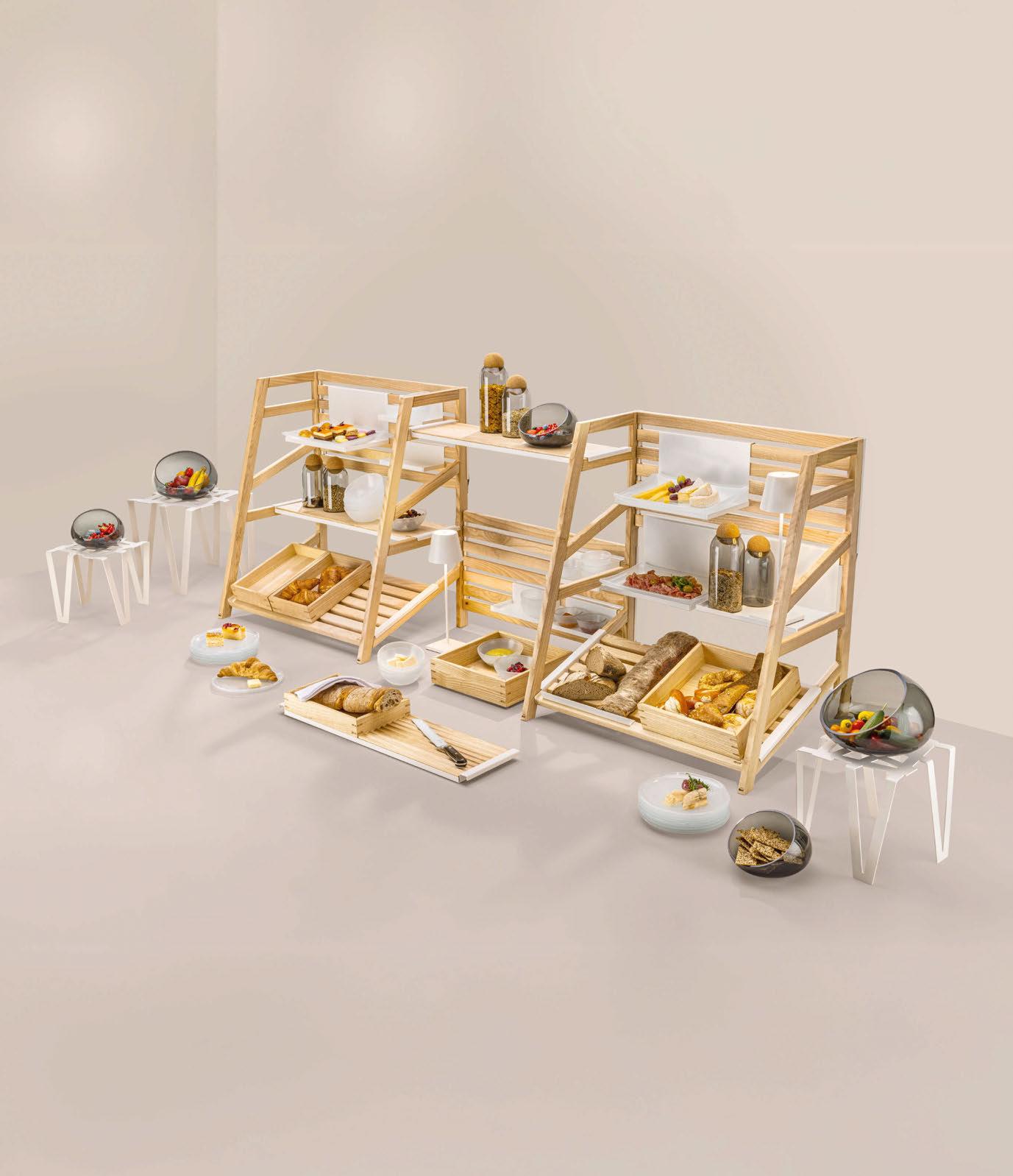 Mogogo is an international brand, born from an interdisciplinary passion for design and food with a common vision to re-imagine and manufacture furniture for the world of hospitality. Known for its modular and design-forward buffet solutions, Mogogo creates products that are tailored to the evolving needs of the industry. The Cantine Display Cart is a prime example of this, drawing inspiration from the classic European market wagon while embracing a modern, sustainable aesthetic. Crafted from lightweight yet durable bamboo and accented with powder-coated metal, the cart is suitable for mobile presentations, themed stations or outdoor activations.