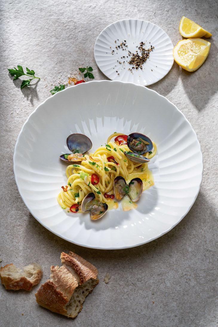 Onda tableware is designed to withstand the test of time, standing out for its durability thanks to a reinforced edge that ensures resistance, preserving both appearance and functionality in highdemand environments. The collection is available in white, cream and blue.