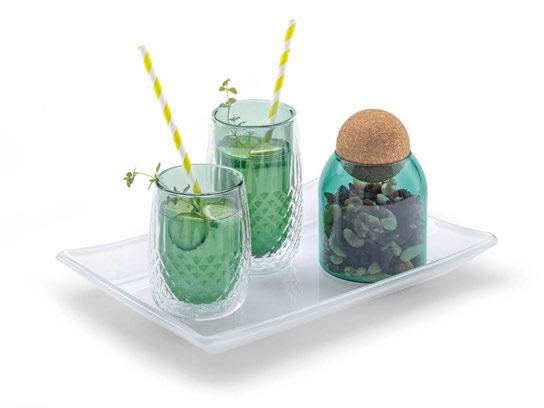 Zieher introduces a series of doublewalled glasses made of high-quality borosilicate, and designed for both hot and chilled drinks. An insulating vacuum between the walls ensures that drinks stay at the ideal temperature for longer. The Stripes line is characterised by a purist design with filigree groove embossing on the outside and a greytinted interior. Meanwhile, with diamondshaped embossing, The Diamonds range is reminiscent of crystal glass. Despite a delicate appearance, the thin but sturdy borosilicate glass impresses with low weight and robustness. Both designs shimmer in an elegant green, offering a colourful accent to tablescapes. www.zieher.com