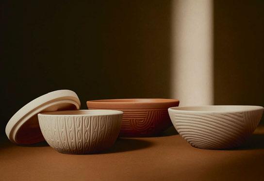 For nearly two decades, Kevala has thrived within the artisanal traditions of Balinese culture, beginning as a small group of passionate ceramicists and growing into a dedicated team of specialised potters, painters, carvers, designers and artists who create madeto-order, handcrafted pieces. Today, more than 150 hotels trust Kevala to craft bespoke pieces for hospitality, dining and wellness. At Six Senses Southern Dunes, this philosophy finds expression in Dune Lines, a collection designed exclusively for the resort. Its curved rims reflect the rolling desert dunes, while intricate carvings draw inspiration from the rich patterns of Bedouin textiles.
