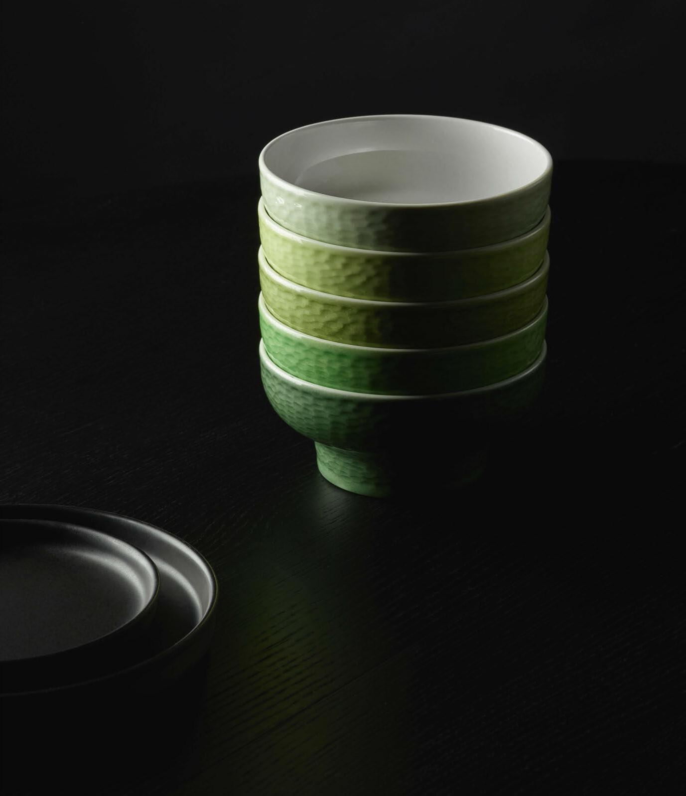 The textured Furo bowl, in five beautiful shades of green, is made from alumina-vitrified clay, which provides exceptional strength and durability. Made in Norway. Learn more at figgjo.com