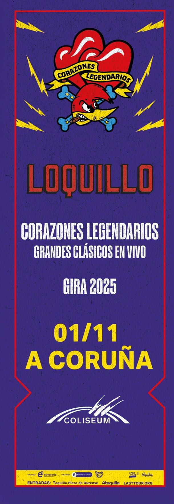 RR Loquillo llega al Coliseum de A Coruña con una fecha incluida dentro de su gira “Corazones Legendarios. Grandes clásicos en vivo”. Una cita que, tal y como promete sin disimulo desde su mismo nombre, no será sino una ocasión inmejorable para reencontrarse con ese generoso catálogo de himnos del pop-rock español amasado a lo largo de varias décadas por el icónico artista barcelonés autor de “El ritmo del garaje” (83).