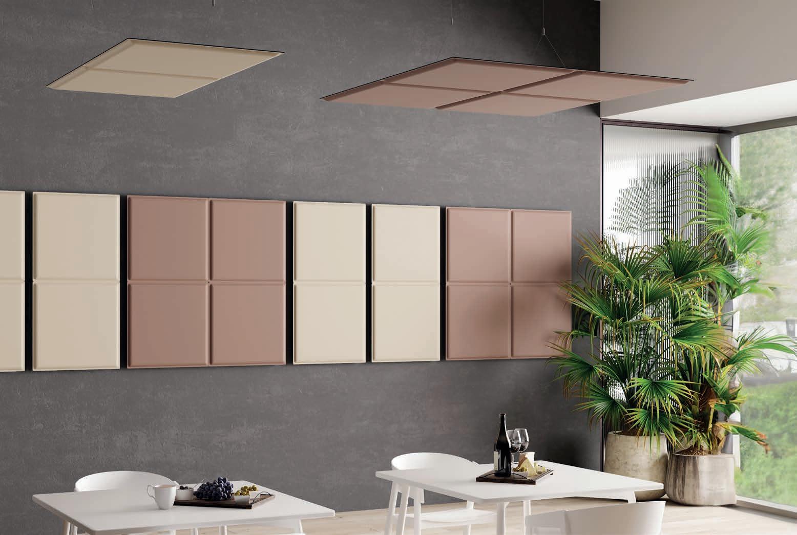 Un pannello a geometria regolare, il pannello Zen Square, pannello acustico monofacciale, arreda con eleganza e con simmetria l’ambiente. Disponibile a pannelli singoli, doppi e quadrati, sono adatti per essere utilizzati sulle pareti o dal soffitto. Il pannello Zen square liscio è anche personalizzabile con immagini e loghi.