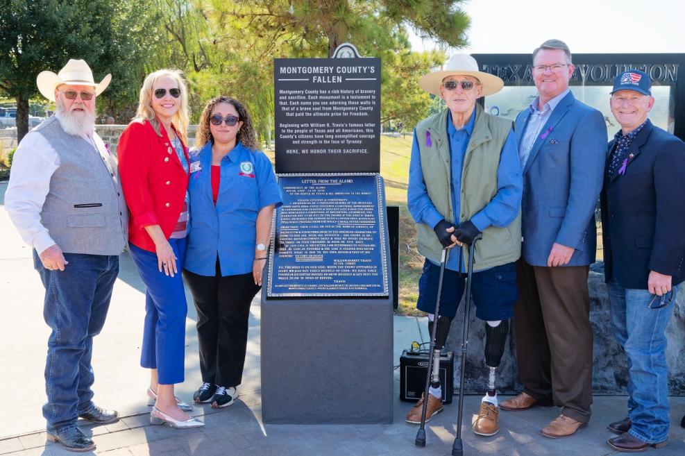 have a plaque of the letter stampedaroundeachofthe state s county seats MontgomeryCountyisthe 26th county to have a plaque placed on its grounds and is unique in having the monument placed at the Veterans Memorial Flag Park Reeves met Rummell in Corsacana, and recruited hertochairtheMCproject, to which she took up the mantle There are an additional 80 counties in Texas that are in the process to obtain a monument, with 148 counties yet to begin the process, which is an amazing statistic when lookingattheyoungageof theorganization.