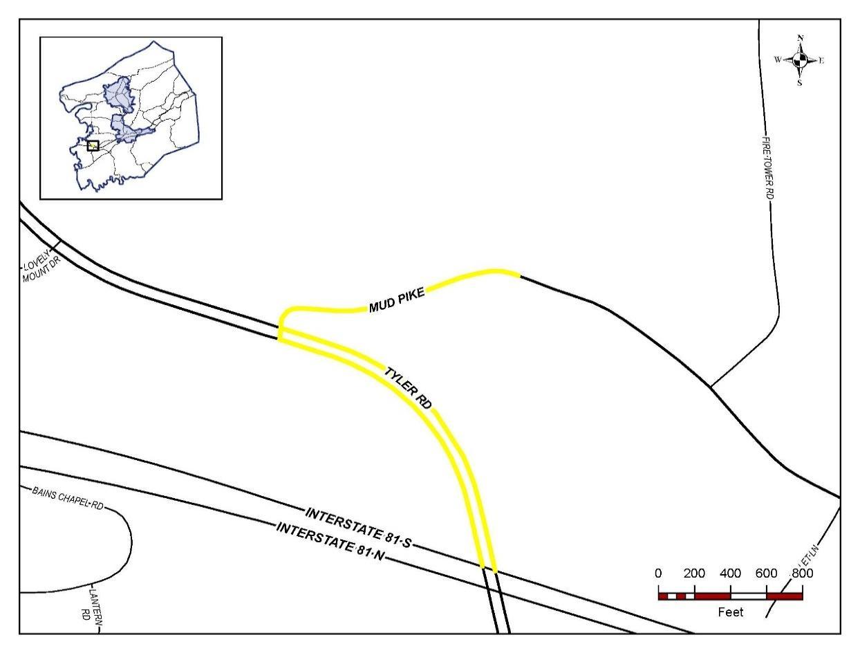 Intersection and pedestrian improvements at Tyler Road and Mud Pike are supported by Comprehensive Plan Goals. (Safety, Congestion, Connectivity, Multimodal Travel)