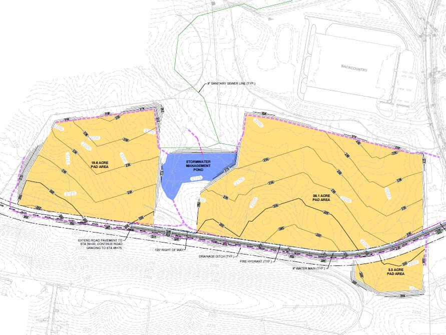 • Begin construction on road, water and sewer extensions, stormwater and pads in FY 24