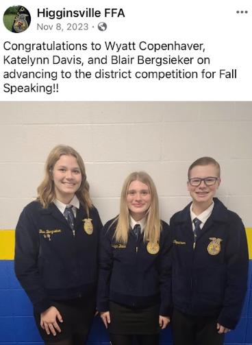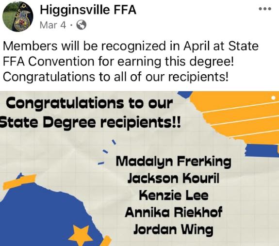 Lynn Dyer, Higginsville FFA; Noah Graham, Clearwater FFA; Isabella Hamner, LCTC FFA; Wyatt Hendley, Bloomfield FFA; Jaden Kultgen, Mt. Vernon FFA; Kiley Mattson, Stanberry FFA; Colin McIntyre, Belton FFA; Kelsey Miller, Warrenton FFA; Caleb Simpson, Bolivar FFA; Maggie Stark, Adrian FFA; Gabriel, Todd, Norwood FFA; Claire Walker, Chillicothe FFA; Lilly Weber, Lamar FFA