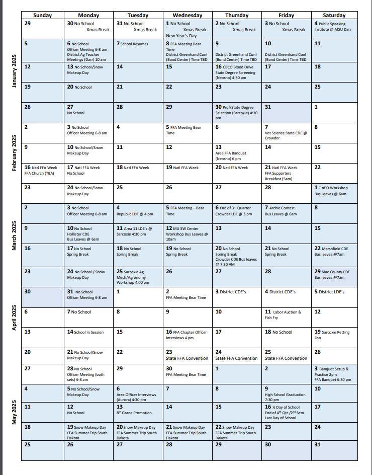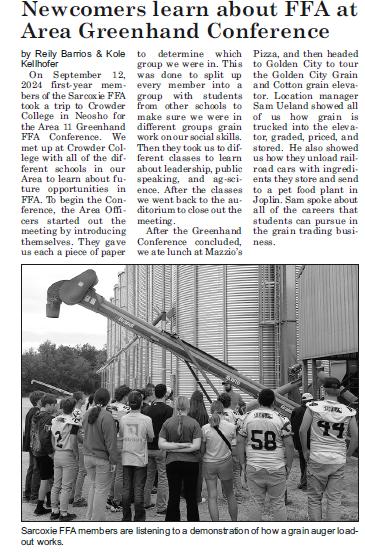 TAKE YOUR TIME AND SOAK IN AS MUCH AS YOU CAN BECAUSE THERE IS ALWAYS SOMETHING NEW TO LEARN AND HELP OUT WITH. ENJOY YOUR TIME IN FFA AND ALWAYS LOOK ON THE BRIGHT SIDE OF THE HARD WORK BEING DONE.