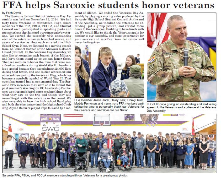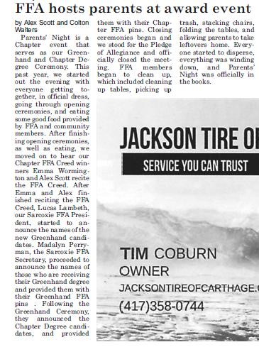Why is FFA important to you: FFA teaches me to be a better leader and provides a better education on things important to me
