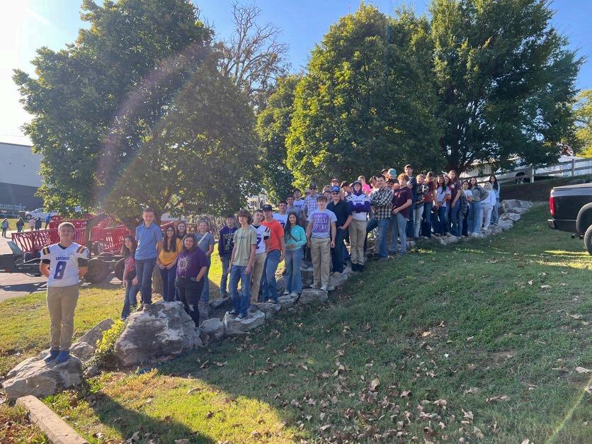 FFA members take a picture before their baseball game on the Field Of Dreams