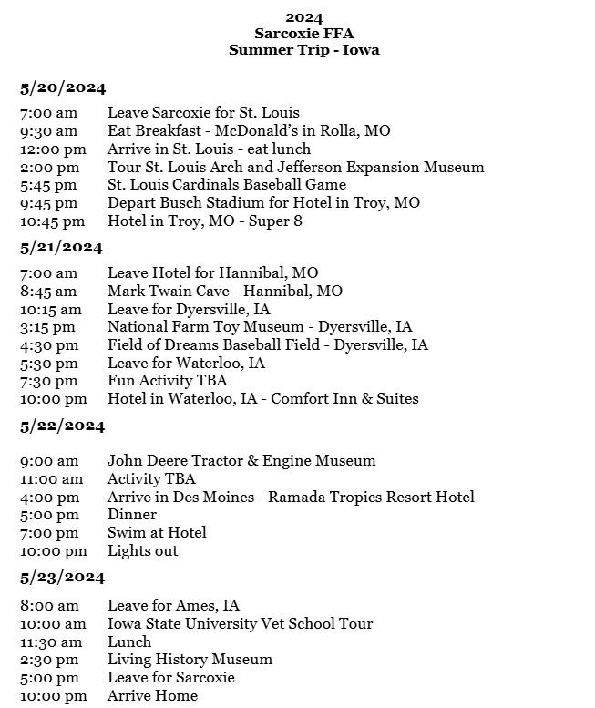The Fourth and final day was spent touring the Iowa State Ag Engineering department as well as the Iowa State Vet school department, then we toured the Living History Museum before heading back to Sarcoxie High School.