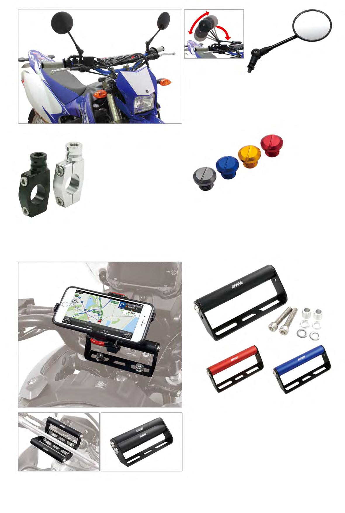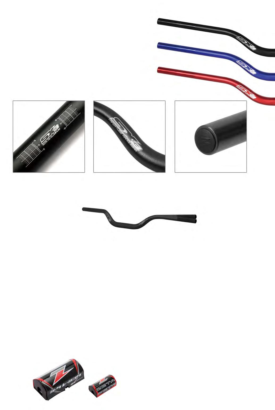 Standard size Part # Color Size ZE47-9131 Blue 254 mm ( 10” ) ZE47-9132 Black ZE47-9133 Red ZE47-9136 White Mini size Part # Color Size ZE47-9232 Black 220 mm ( 8.8” ) Part # ZE01-0001 Model Part # Handlebar dimensions color Approximate bend A B C D E Gray Blue Red Dual Sport-Low ZE07-641 # 800 75 46 200 78 8 2 3 XR250/Baja/Motard XR230/Motard SEROW225 Dual Sport-Medium ZE07-645 # 800 90 61 200 78 8 2 3 DRZ400S/SM KLX250-'07 D-TRACKER-'07 CRF250L/M CRF250L(S) CRF250RALLY/(S) CRF300L/L RALLY Motard-Low ZE07-661 # 800 80 45 200 62 8 2 3 SEROW250 Motard-Medium ZE07-665 # 800 95 60 200 62 8 2 3 KLX250'08-16 D-TRACKER'08-16 WR250R/X 50-Mini ZE07-902 # 715 215 193 145 40 8 CRF50F,TTR50,DRZ50/70 110-Mini ZE07-904 # 743 173 144 190 45 8 KLX110/L Mini-Trail ZE07-993 # 775 106 80 181 60 8 2 3 KLX125,D-TRACKER125 KLX150S,XTZ125 # Add color number to complete number for ordering.