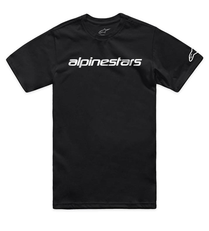 Alpinestars heritage wordmark in a chainstitch fill. Front collar inset. Set-in rib collar, rib cuffs