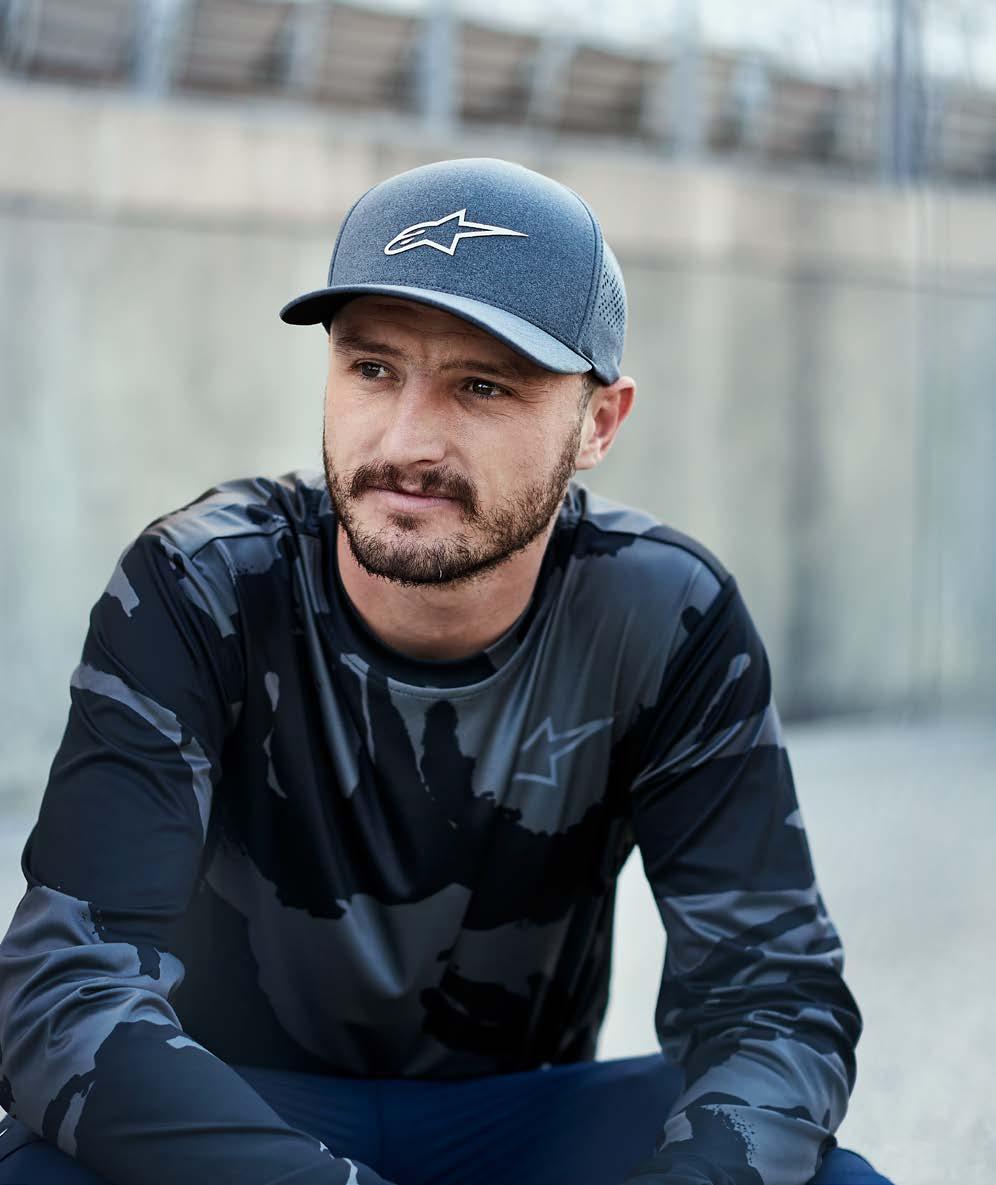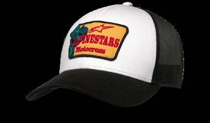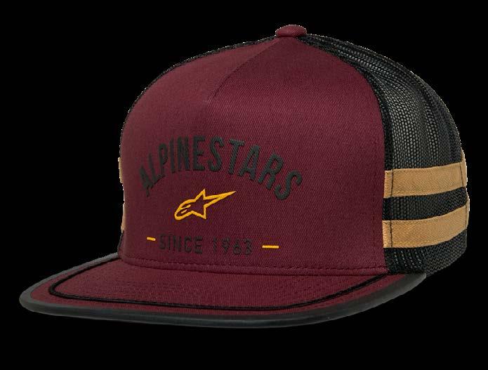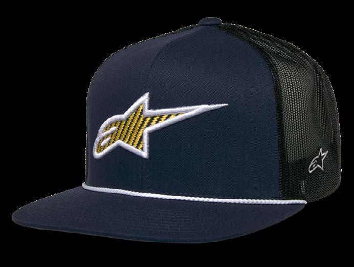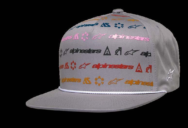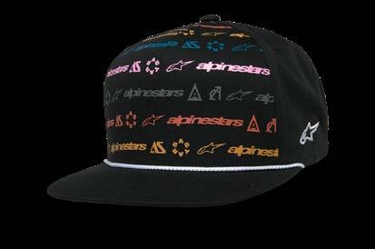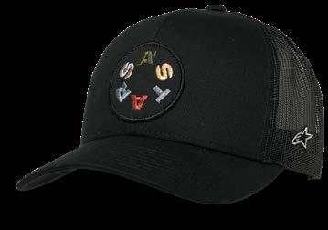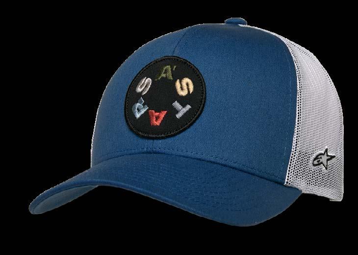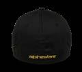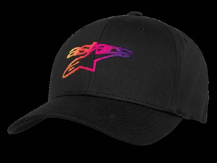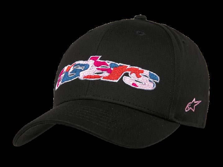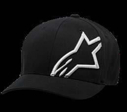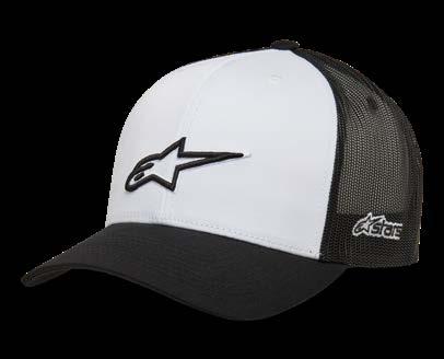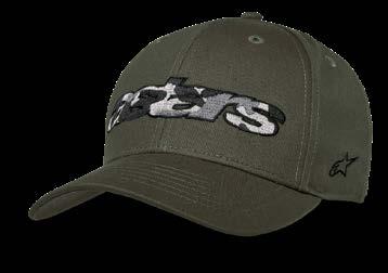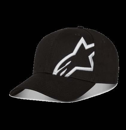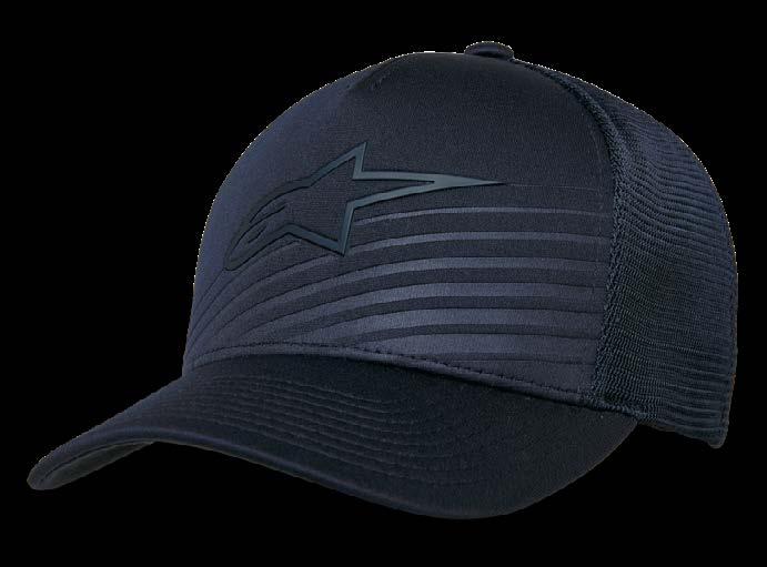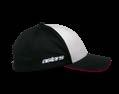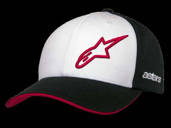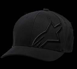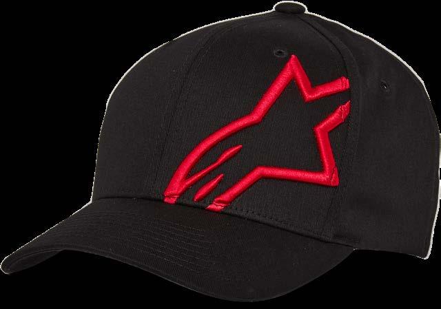 Stretch twill main fabric. Sandwich bill Front 3D embroidered logo, both sides Linear thick print Internal and back labeling Curved bill with structured crown Flex back
